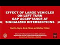 Driver gap acceptance behavior is a function of geometric and operational factors. An essential measure of gap acceptance is the critical gap. At signalized intersections with permissive left turn movements, the critical gap is the foundation to estimate left turn capacity. Several studies have identified geometric, temporal, spatial, and operational effects on the critical gap estimates. However, recommended critical gap values have remained unchanged for decades. The Highway Capacity Manual recommended critical gap for left turns at signalized intersections is 4.5 seconds and the follow-up headway is 2.5 seconds. Most conventional signal optimization software (PASSER, SHYCHRO, VISSIM, SIDRA, HCS) use these outdated critical gap and follow-up headway estimates without accounting for specific traffic conditions such as large vehicles affecting gap acceptance. As part of this study, observational data and gap acceptance estimates with the presence of large vehicles will be integrated with microsimulation and signal optimization software to evaluate the effect of large vehicles in operational performance of left turning vehicles at signalized intersections.